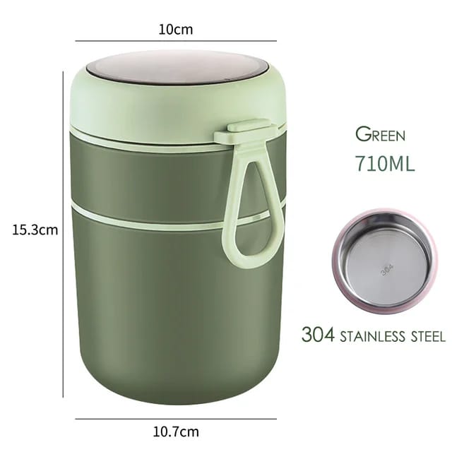 24 oz Portable Thermal Lunch Box Lunch Box with Stainless Steel Spoon and Cold Drink Keeping Cup Polypropylene Plastic Dinnerware and Soup Urinal, Bento Box